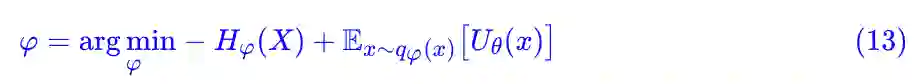 式 (11) 有效的前提是 qφ(x) 跟 qθ(x) 足够接近,也就是上式足够小,而对于固定的 qθ(x),Zθ 是一个常数,所以 φ 的优化目标是: