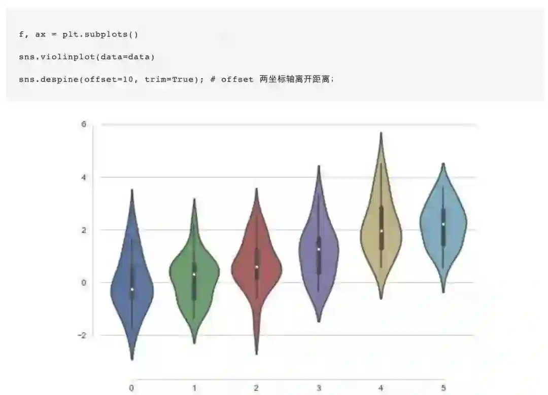 一些图的边框可以通过数据移位,当然调用despine()也能做同样的事。当边框没有覆盖整个数据轴的范围的时候,trim参数会限制留存的边框范围。