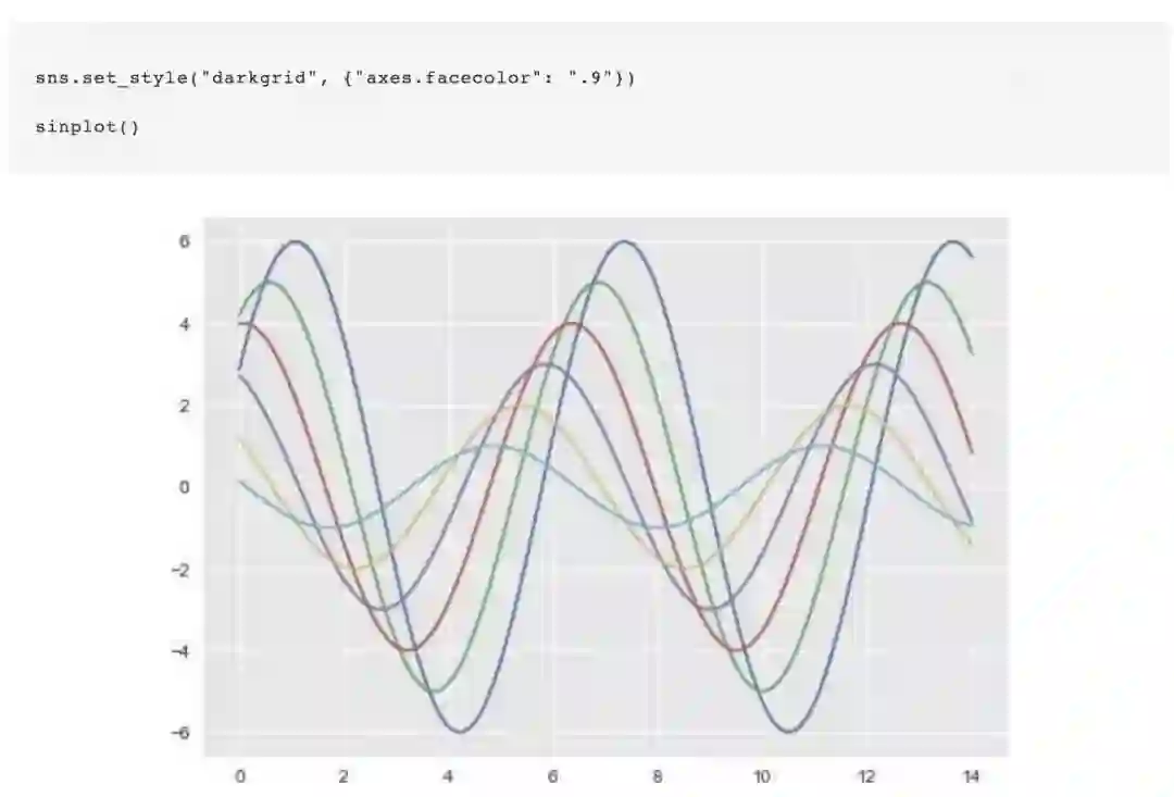 seaborn默认的灰色网格底色灵感来源于matplotlib却更加柔和。大多数情况下,图应优于表。seaborn的默认灰色网格底色避免了刺目的干扰,对于多个方面的图形尤其有用,是一些更复杂的工具的核心。