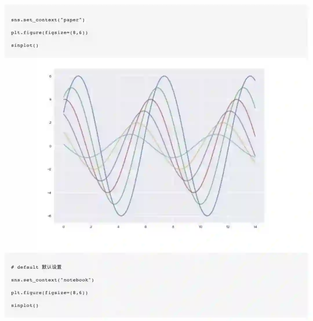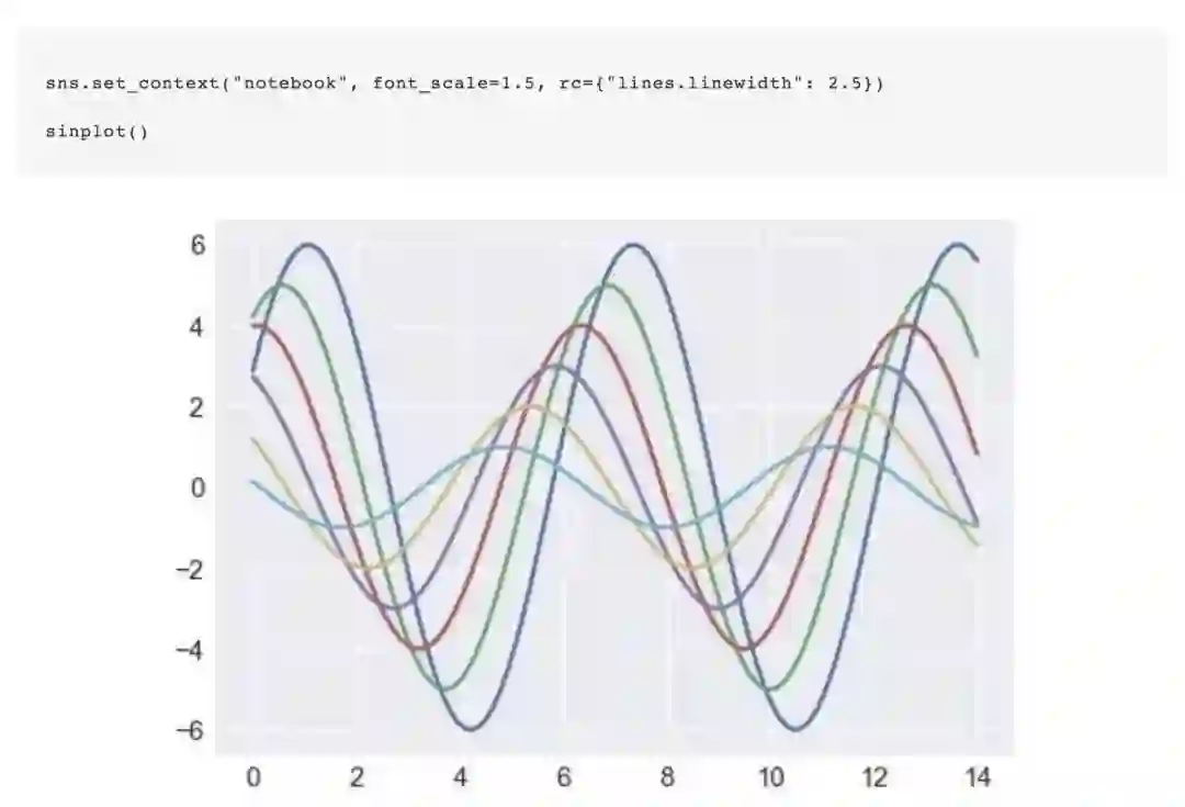 四种预设,按相对尺寸的顺序(线条越来越粗),分别是paper,notebook, talk, and poster。notebook的样式是默认的,上面的绘图都是使用默认的notebook预设。