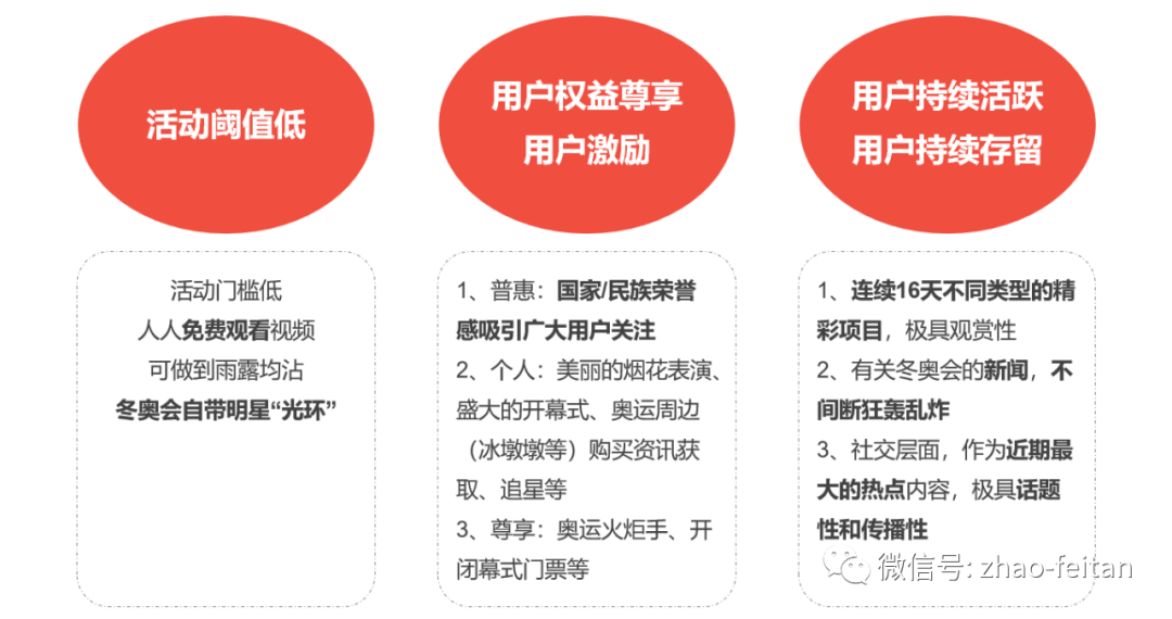 从根本上来分析,归根结底还是因为“用户需求”,广大人民对于美好生活的向往,在柴米油盐酱醋茶之外的精神愉悦、娱乐生活有很多美好的需求。而恰好奥运会本身就自带明星五环,能吸引用户自主的关注、参与此次活动;