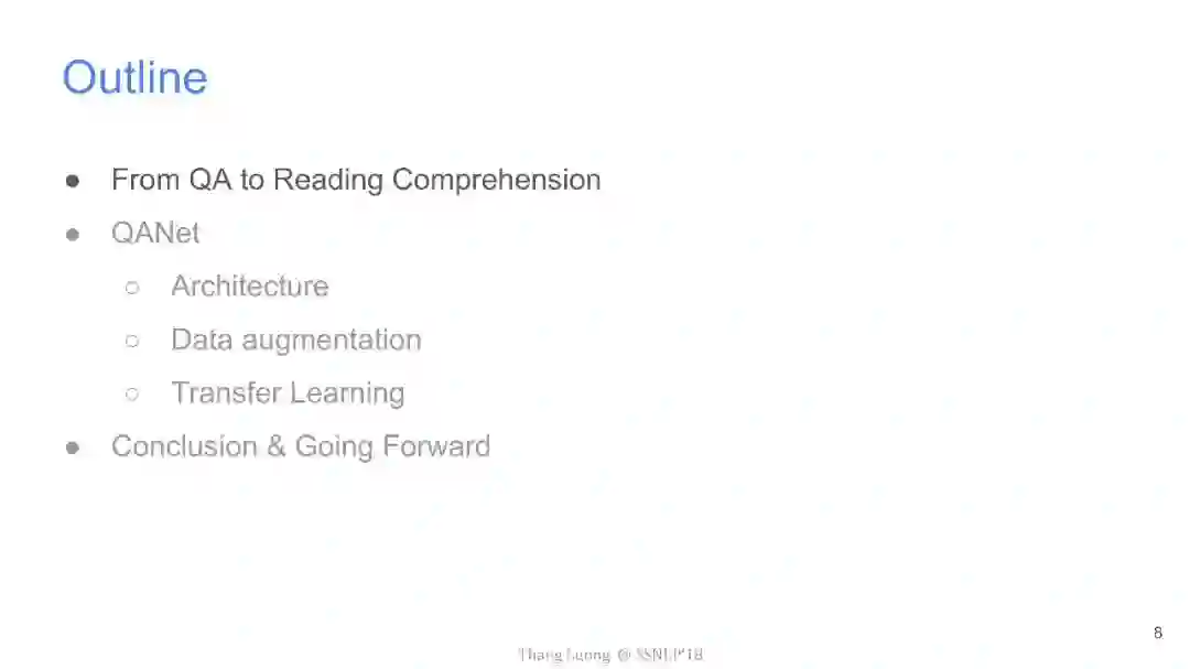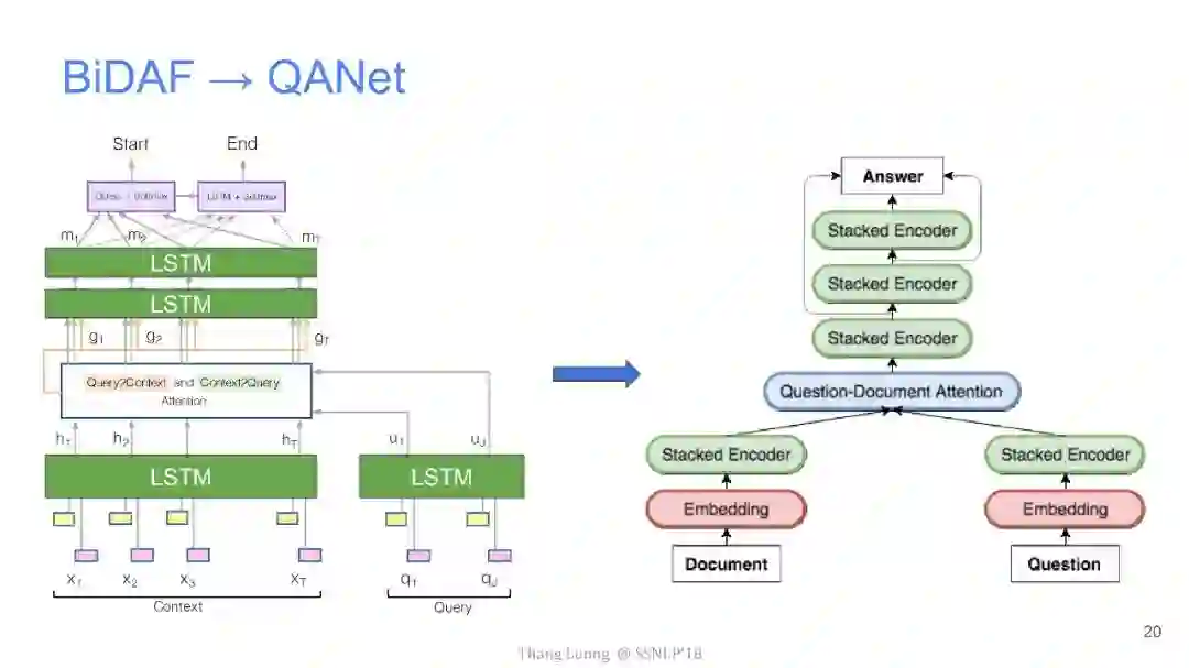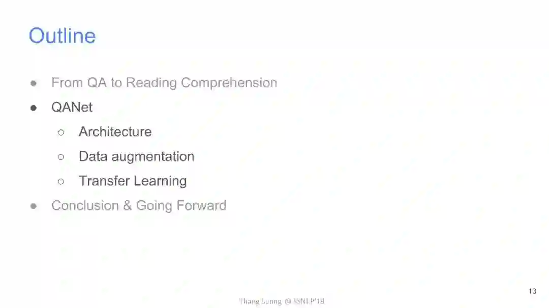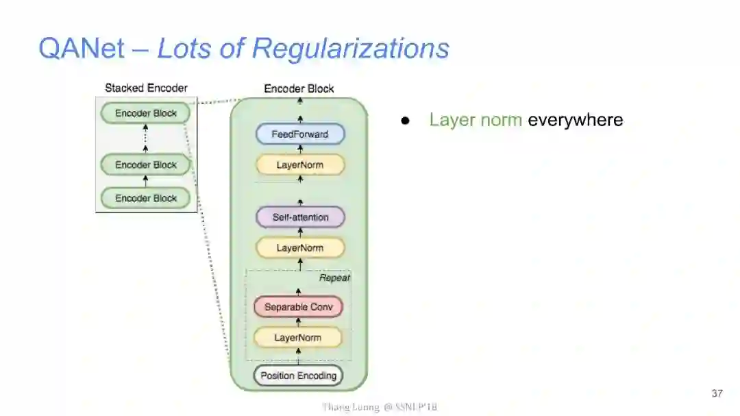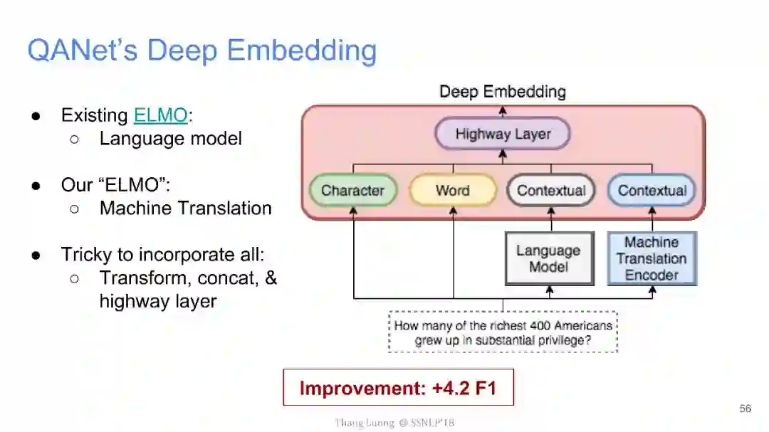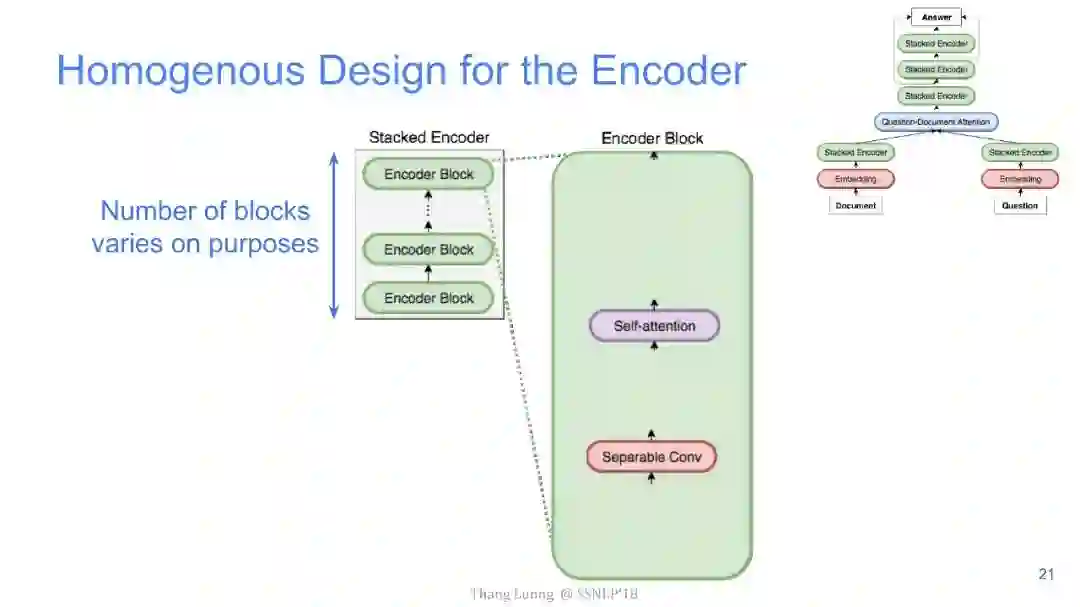 【导读】四月份来自卡内基梅隆大学和谷歌大脑的研究者发布了QANet论文,并发表在ICLR2018上,旨在提出一种新型问答模型。该模型中去除了其他问答模型中的RNN部分,仅使用卷积和自注意力机制,便达到了超越目前最优模型的效果,并使用此模型获得了阅读理解SQuAD大赛的冠军。本文来自谷歌大脑发布的最新介绍,详细介绍了该模型中的技术细节,现由专知团队整理出来,以飨读者。