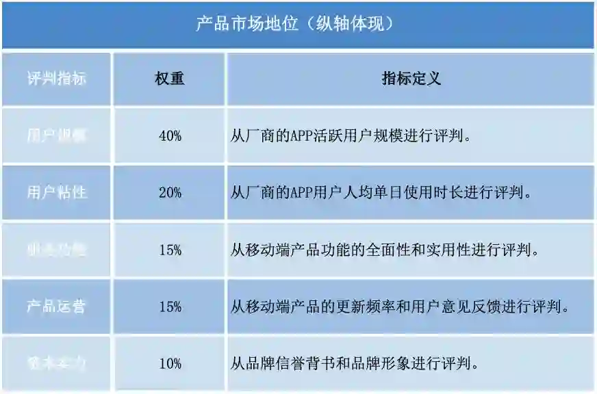 产品市场地位:Analysys易观认为,互联网证券市场积累了大量的移动端产品,马太效应明显,随着产品模式愈发成熟,各个产品谋求差异化的商业模式,以金融科技赋能竞争,第三方证券App的用户规模、用户粘性、服务功能、产品运营和品牌价值是衡量第三方证券App现有产品市场地位的重要指标。
