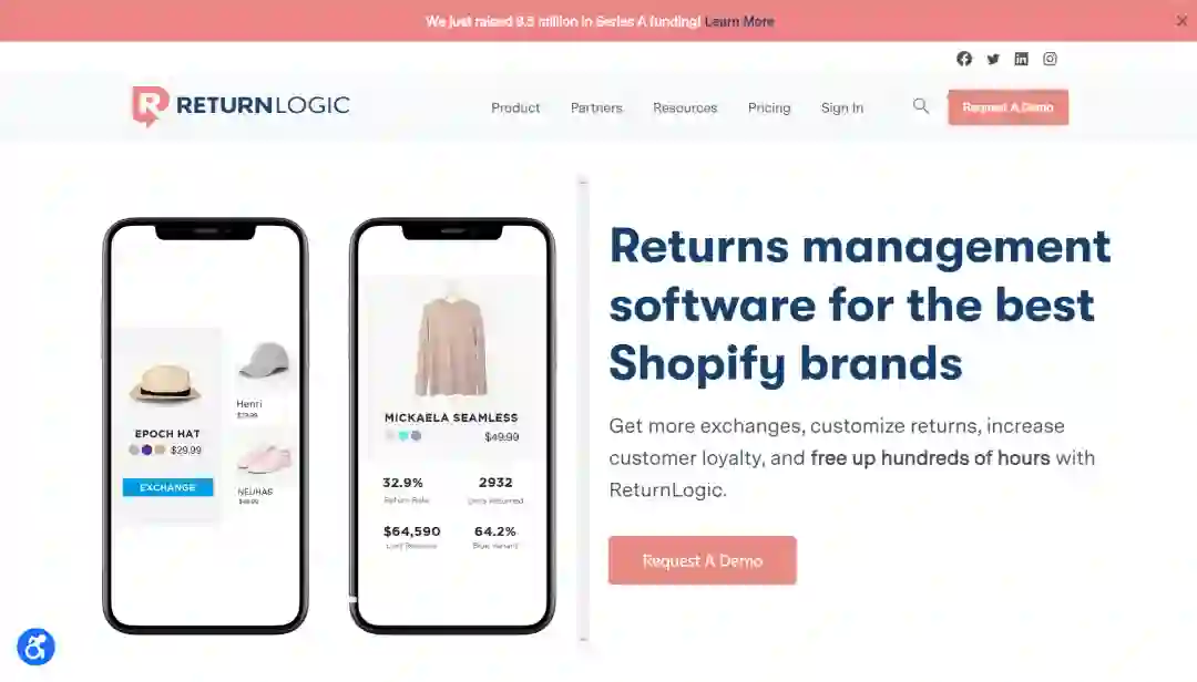 Returnlogic开发了API接口,可以无缝接入各大平台店铺,目前已经和Shopify、亚马逊、沃尔玛、百思买等众多电商平台达成合作,品牌合作方数量也在日益增长。官网显示,Returnlogic服务定价为300美元/月起。