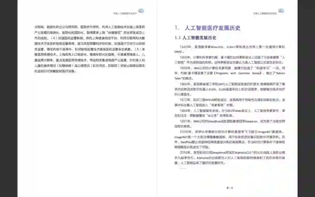 【导读】近日,由上海交通大学人工智能研究院、上海市卫生和健康发展研究中心、上海交通大学医学院、上海感知城市数据科学研究院联合发布的《中国人工智能医疗白皮书》,详细阐述了人工智能医疗发展历史、人工智能医疗政策分析、人工智能医疗行业现状、中国AI医疗行业面临的挑战,以及对中国AI医疗行业的发展建议。