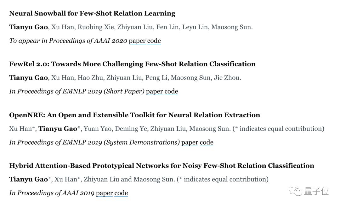 4年里,高天宇总共在AI顶级学术会议上发表了4篇论文:两篇AAAI、两篇EMNLP。