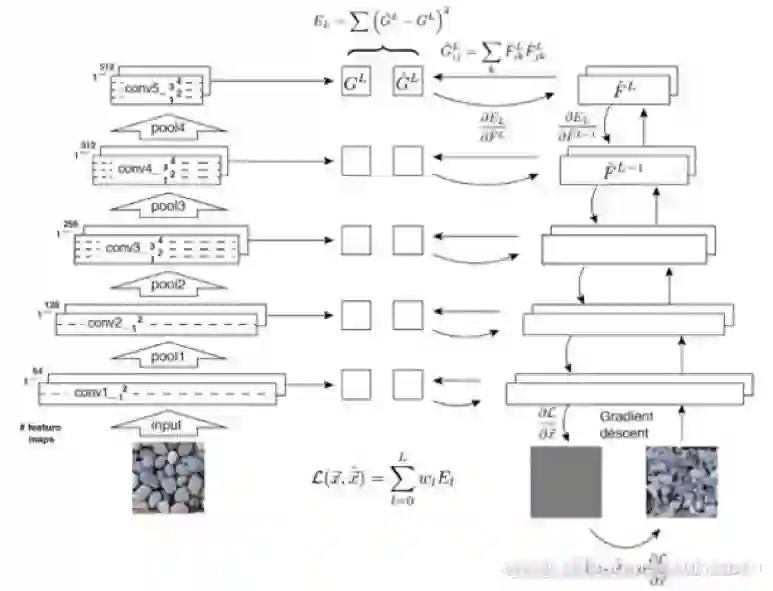 它对给定纹理图案的Gram矩阵进行特征逆向工程。使生成图像的各层特征的Gram矩阵接近给定纹理图像的各层Gram。低层特征倾向于捕获细节信息,而高层特征可以捕获更大面积的特征。
