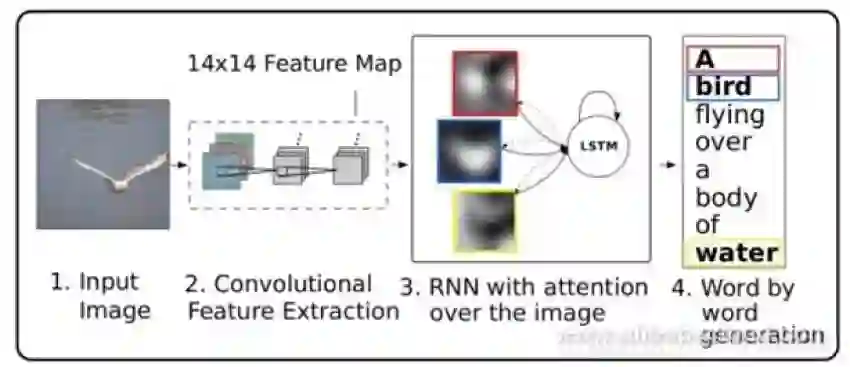注意力机制是机器翻译器用来捕获远程依赖关系的标准技术,也可以用于图像字幕。在解码器网络中,除了预测下一个单词之外,在每个时刻,我们还需要输出二维注意力图像并将其用于深度卷积特征的加权收敛。使用注意力机制的另一个好处是网络可以被可视化,这样我们就可以轻松地看到网络在生成每个单词时所看到的图像部分。
