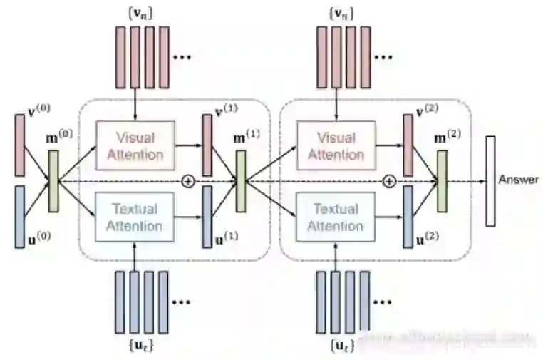 注意使用注意力机制的图像字幕系统可提高视觉问答的性能。注意力机制包括视觉注意(“我在哪里看”)和文本注意力(“我在看哪个词?”)HieCoAtten可以同时或依次创建视觉和文本注意力。DAN在同一空间内投射视觉和文本注意力的结果; 然后它同时产生视觉和文本注意力的下一步。