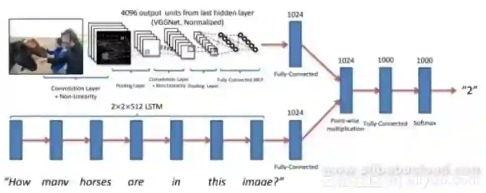 问题概念是使用CNN从图像中提取特征,RNN从文本问题中提取文本特征,然后组合视觉和文本特征,最后使用完全连接后进行分类。这项任务的关键是弄清楚如何连接这两种类型的功能。直接组合这些特征的方法将它们转换为矢量,或者通过添加或乘以元素来添加或生成视觉和文本矢量。