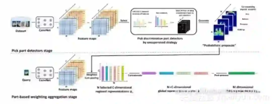 PWA:PWA发现,深度卷积特征的不同通道对应于目标上不同区域的响应。因此,PWA可以选择一系列确定性特征映射,并将其标准化结果用作收敛的空间权重。然后系统级联结果以形成最终图像的表示。