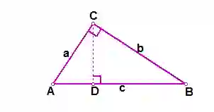 如图,在RtΔABC中,设直角边AC、BC的长度分别为a、b,斜边AB的长为c,过点C作CD⊥AB,垂足是D