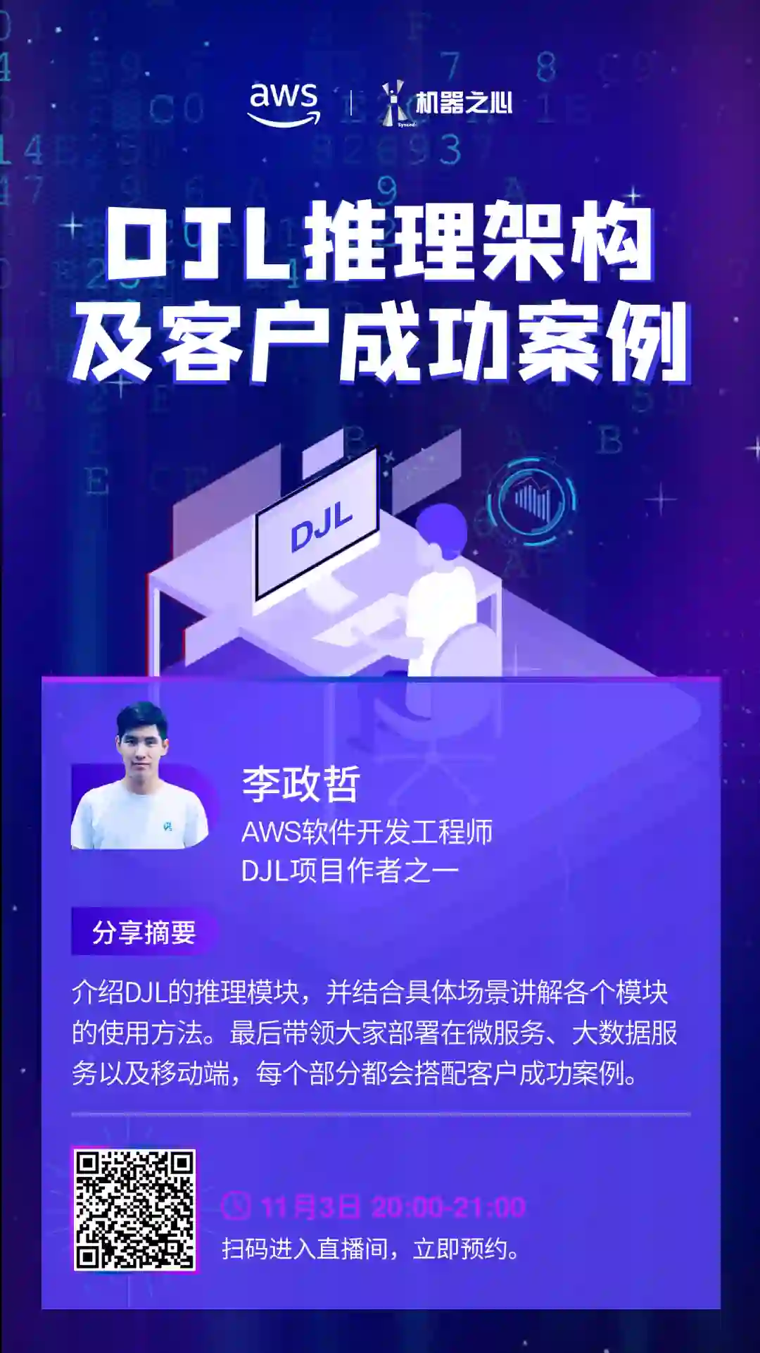 11月3日,AWS软件开发工程师李政哲将带来第二期分享《DJL推理架构及客户成功案例》。第二期分享主要介绍: