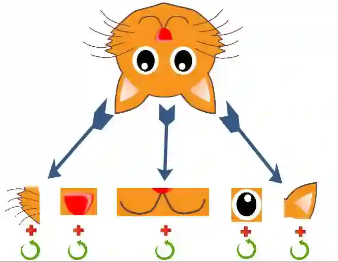 它是一只猫,你肯定猜对了吧!但是你是如何知道它是一只猫的呢?现在将这张图片进行分解:
