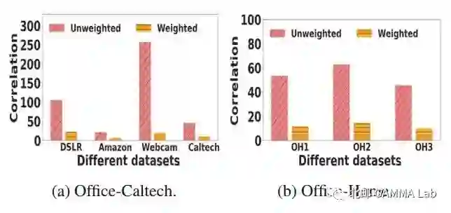 图2 是加权数据和不加权数据相关性对比,可以看出我们的模型可以有效去除特征相关性。图3是参数实验,证明了参数的鲁棒性。