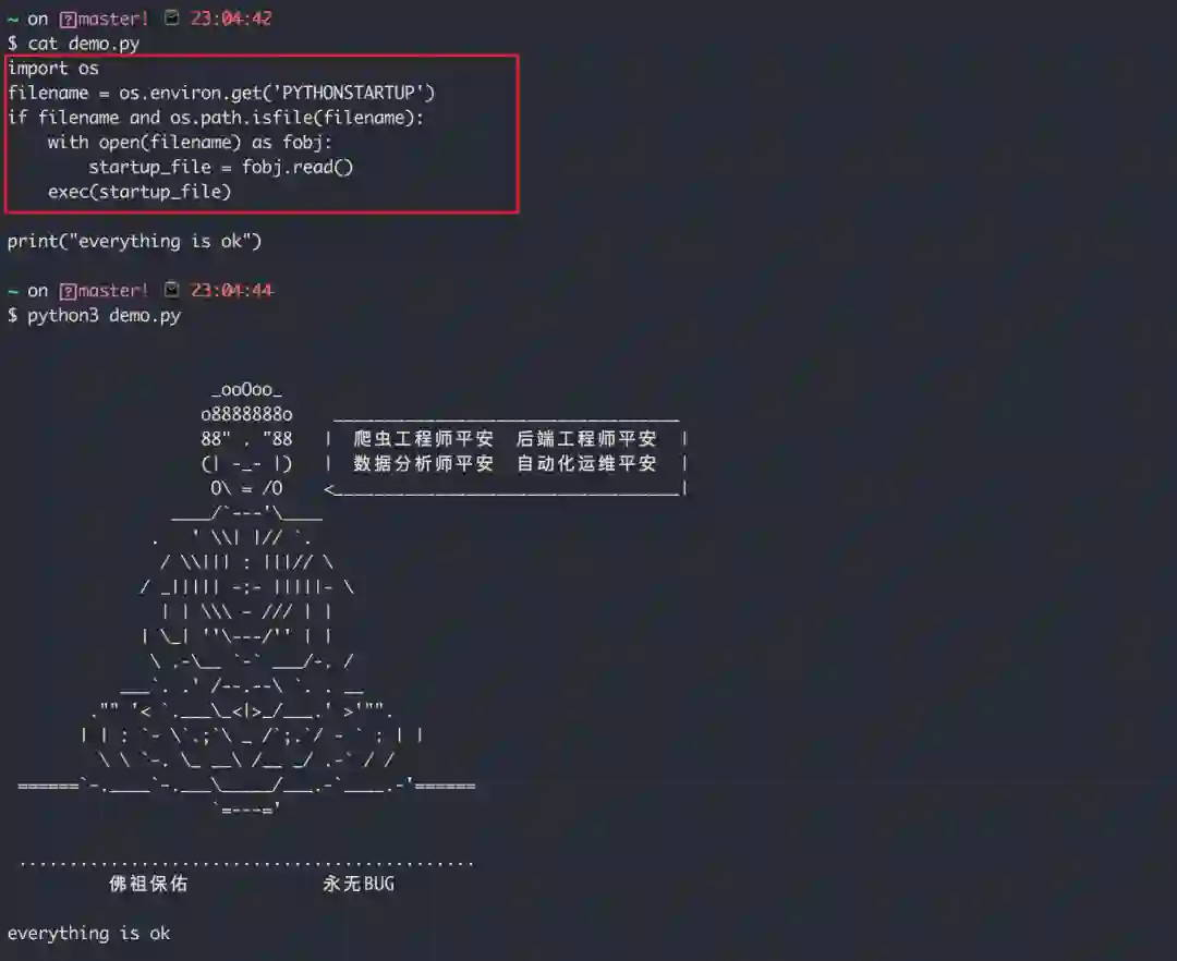 $ export PYTHONSTARTUP=/Users/MING/startup.py