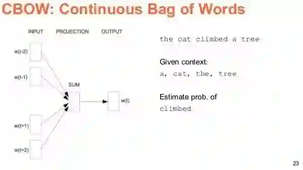 在自然语言处理中,我们希望将文档中的每一个单词表示为一个数值向量,使得出现在相似上下文中的单词具有相似或相近的向量表示。在连续词袋模型中,我们的目标是利用一个特定单词的上下文,预测该词。