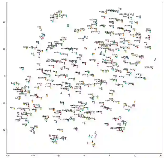 下图是课程作业的一个结果,词向量的 t-SNE 投影,通过相似性进行聚类。