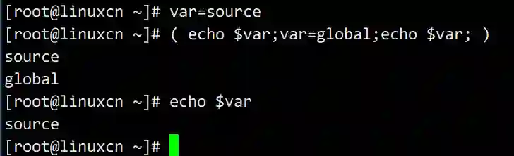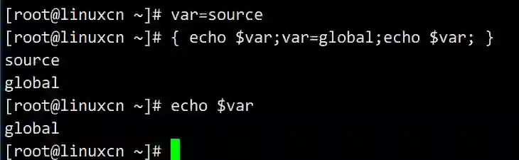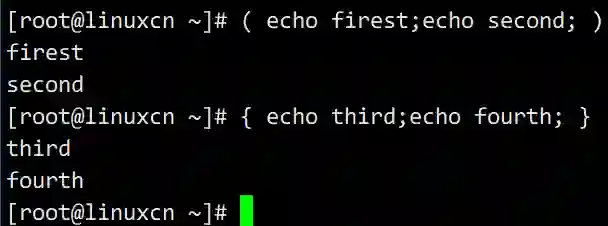 注意: ( ) 只是对一串命令重新开一个 子 shell 进行执行, { } 对一串命令在 当前 shell 执行。