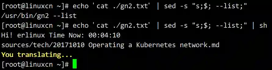 # echo `cat ./gn2.txt` | sed -s "s;$; --list;"