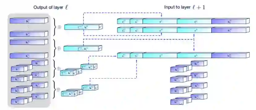 图 1:费米子神经网络(Fermi Net)。上图:全局架构。一个或两个电子位置的特征是该网络的不同串流的输入。这些特征经过几层的变换,再应用一个行列式,然后在那个位置的波函数就作为输出。下图:单一一层的细节。网络将具有同样自旋的电子的特征放到一起求平均,然后将这些特征连接起来,为每层构建一个电子位置的等变函数。