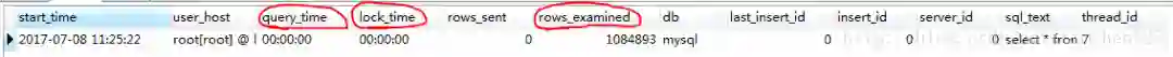 关于慢查询日志的表中的数据个文本中的数据格式分析: