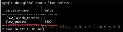 输入命令:show global status like ‘%slow%’;