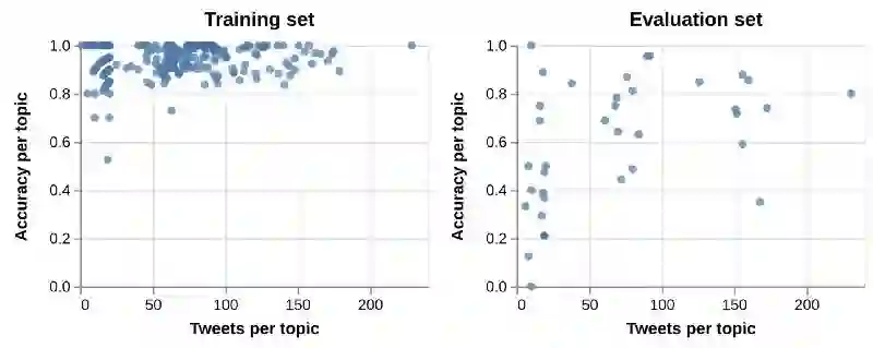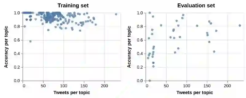 每个主题的平均准确率同样独立于主题相关的推文数量。