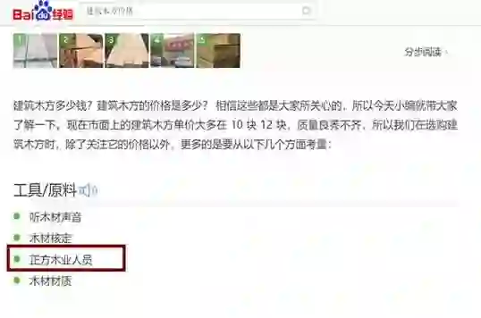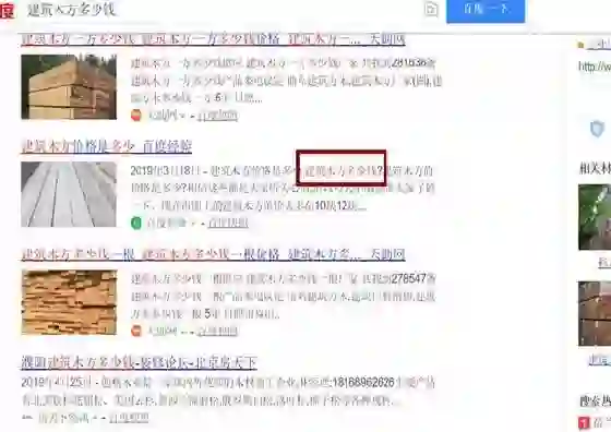 关键词为建筑木方,我这边需要组合长尾关键词为,建筑木方多少钱?建筑木方价格?建筑木方如何进行挑选?这种关键词核心词的热门关键词,这些关键词可以包含在标题以及正文里面。看下图:搜索关键词为建筑木方价格?建筑木方多少钱?