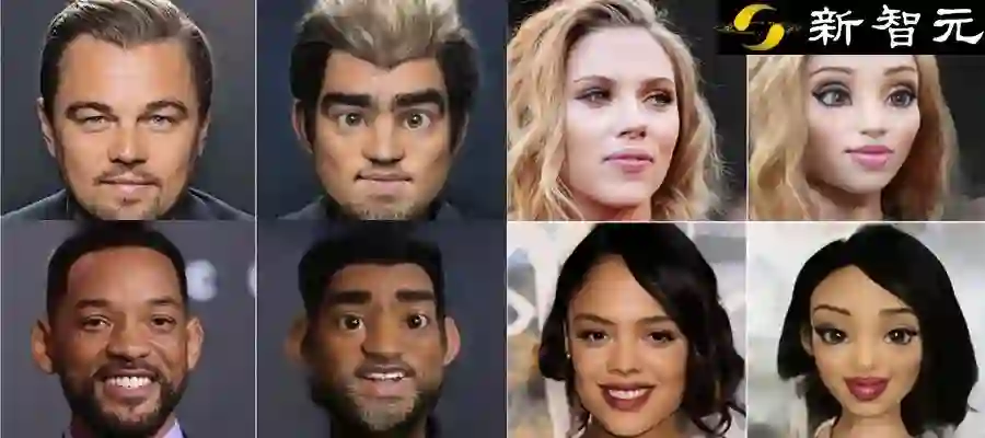 让原始StyleGAN2生成了一堆真实人脸,让迪士尼版StyleGAN2生成了一堆卡通脸。就这样,用一对对的数据为AI提供训练素材。
