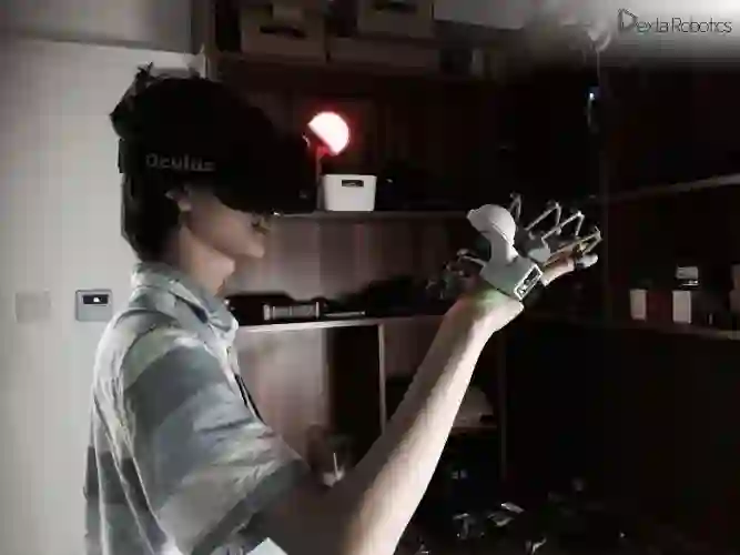 而如果你想要更厉害的产品,Dexta Robotics 推出的 Dexmo 在动作追踪的同时,可以提供更好的力反馈效果。