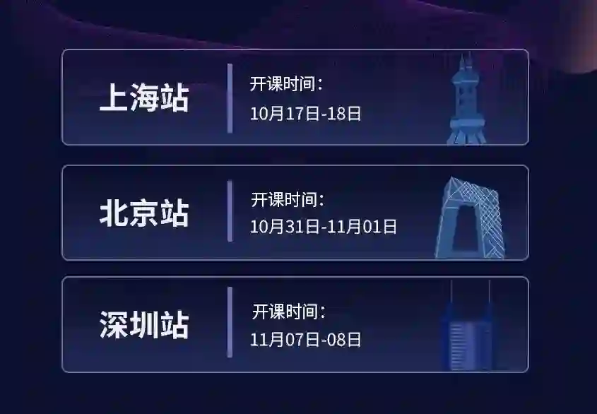 我们的开课城市主要集中在北京、上海、深圳,尽量照顾各个地方的学员。每一期都有很多外地的小伙伴来上课。