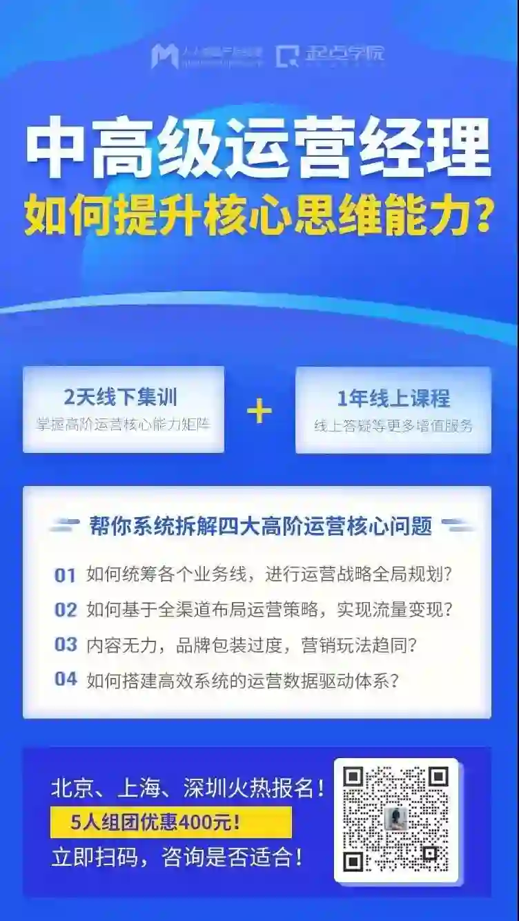 其实,想要实现职场晋升,成为卓越的运营管理者,需要的不仅仅是肯打肯拼的热情和体力,比一路苦干更重要的是高阶运营思维和规划统筹、管理能力的提升。