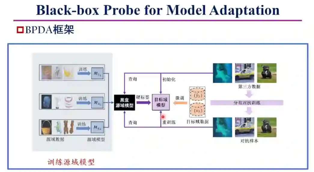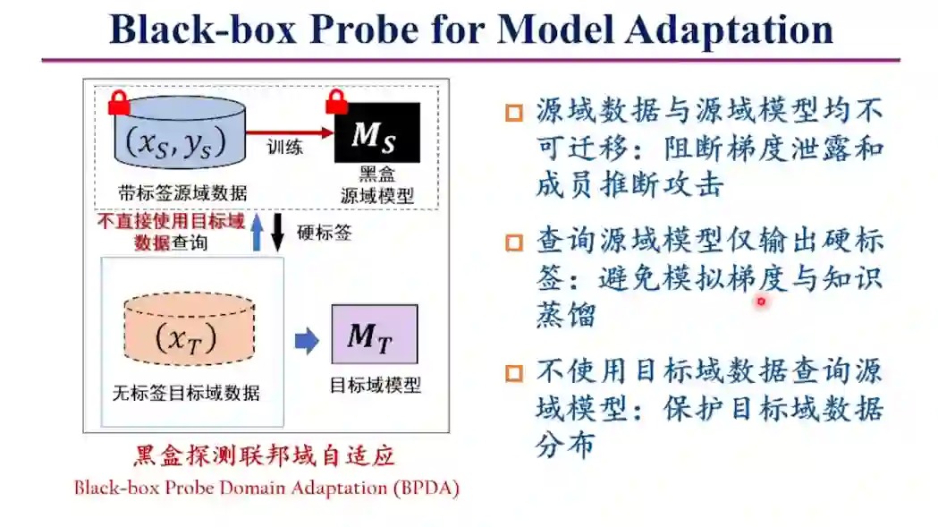 针对该框架,韩教授提出了BPDA域自适应方法,通过分布对抗训练提升黑盒探测效率,可在不传递模型的情况下实现安全的域自适应。