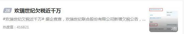 #欢瑞世纪欠税近千万#话题登上微博热搜。当日晚间,欢瑞世纪在微博发表声明,回应公司欠税等相关消息。