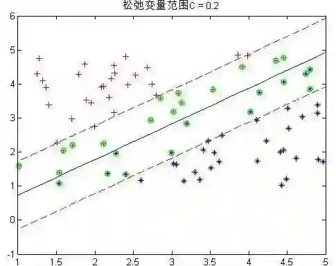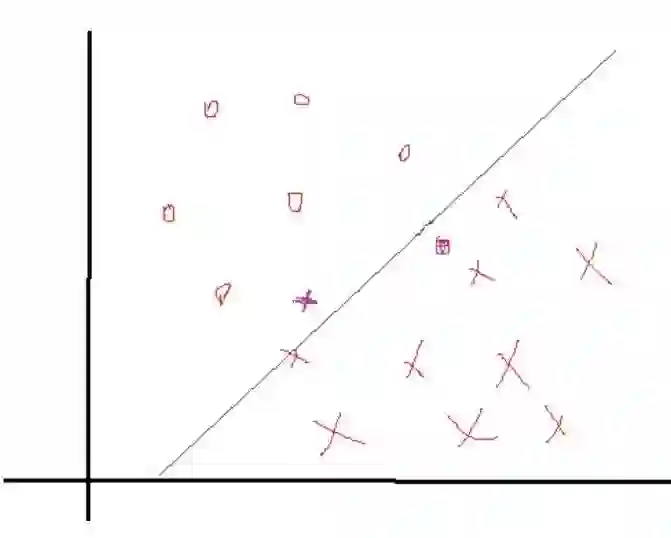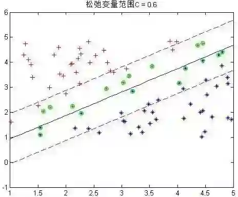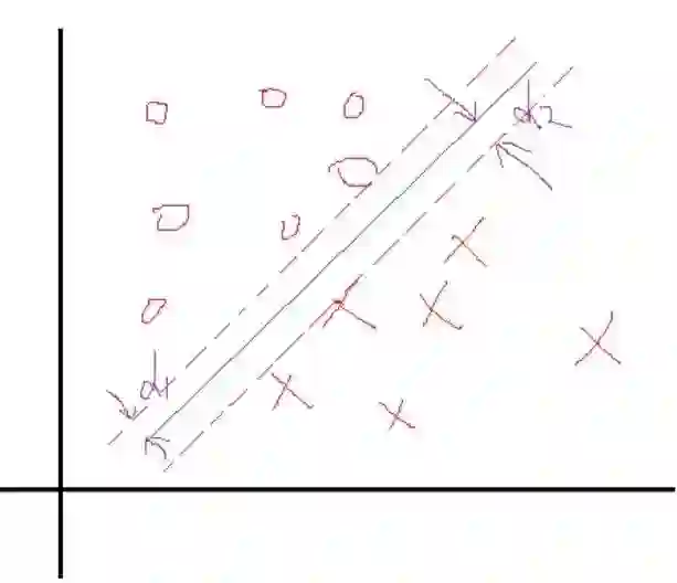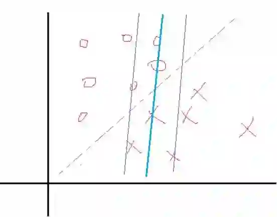 细心的你肯可能会发现,上述所有的构造等等都是在数据完全线性可分,且分界面完全将两类分开,那么如果出现了下面这种情况: