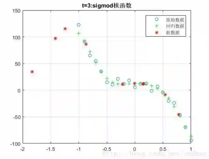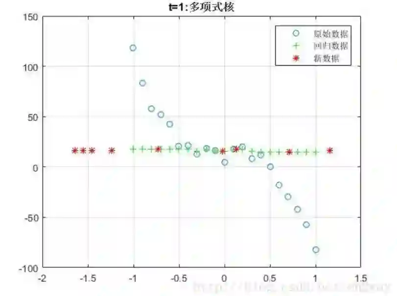 因为我们的数据是由三次函数模拟生成的,所以可以看到,在这种情况下使用线性核t=0时候效果更好,然而实际情况下一般我们也不知道数据的分布函数,所以在选择核函数的时候还是需要多实验,找到最适合自己数据的核函数。