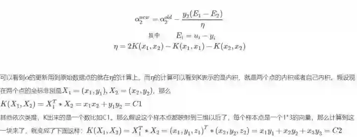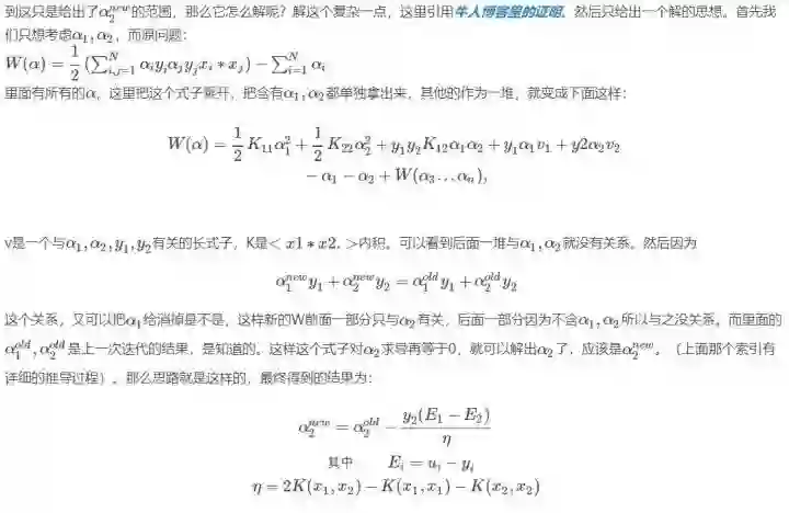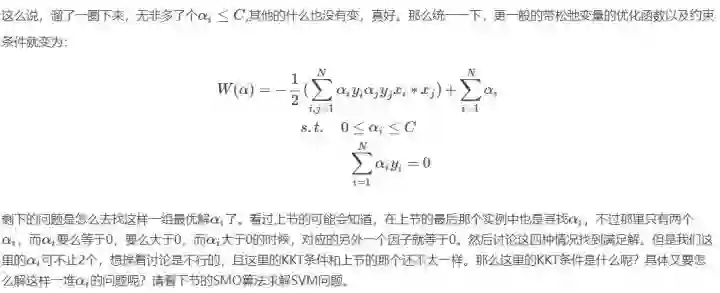 这里顺便提一下后面会介绍到的内容,就是实现SVM算法的SMO方法,在哪里,会有很多,那么人们怎么解决的呢,就是随便选择两个去变化,看看结果好的话,就接受,不好的话就舍弃在选择两个,如此反复,后面介绍。
