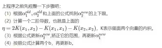 至此我们可以说,简单的,线性的,带有松弛条件(可以容错的)的整个SMO算法就完了,剩下的就是循环,选择两个