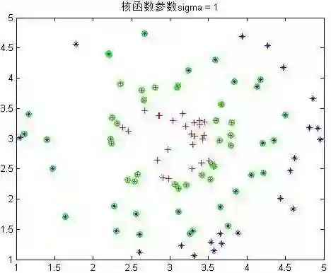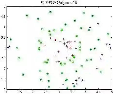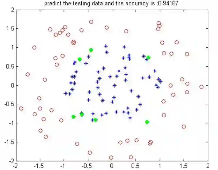 数据人为设置了一些重叠,这个结果算是非常好了。当然对于libsvm函数,里面还有许多细节,像参数选择等等,不同的参数结果是不一样的,这就待你去探究了。