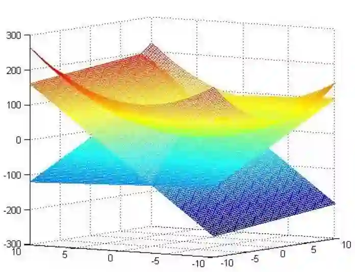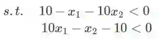 继续讨论关于带等式以及不等式的约束条件的凸函数优化。任何原始问题约束条件无非最多3种,等式约束,大于号约束,小于号约束,而这三种最终通过将约束方程化简化为两类:约束方程等于0和约束方程小于0。再举个简单的方程为例,假设原始约束条件为下列所示: