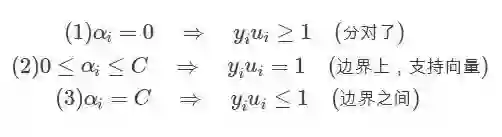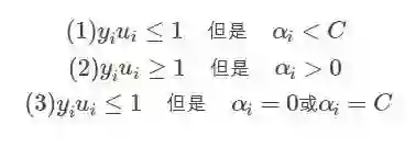 那么满足KKT条件的,我们说如果一个点满足KKT条件,那么它就不需要调整,一旦不满足,就需要调整。由上可知,不满足KKT条件的也有三种情况: