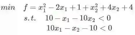 假设有一个目标函数,以及它的约束条件,形象的画出来就如下: