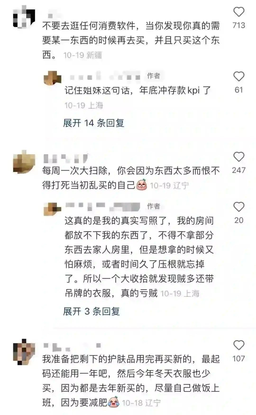 更有人总结,“除了日用消耗品和有产出的智力投资,其他一概不买”。