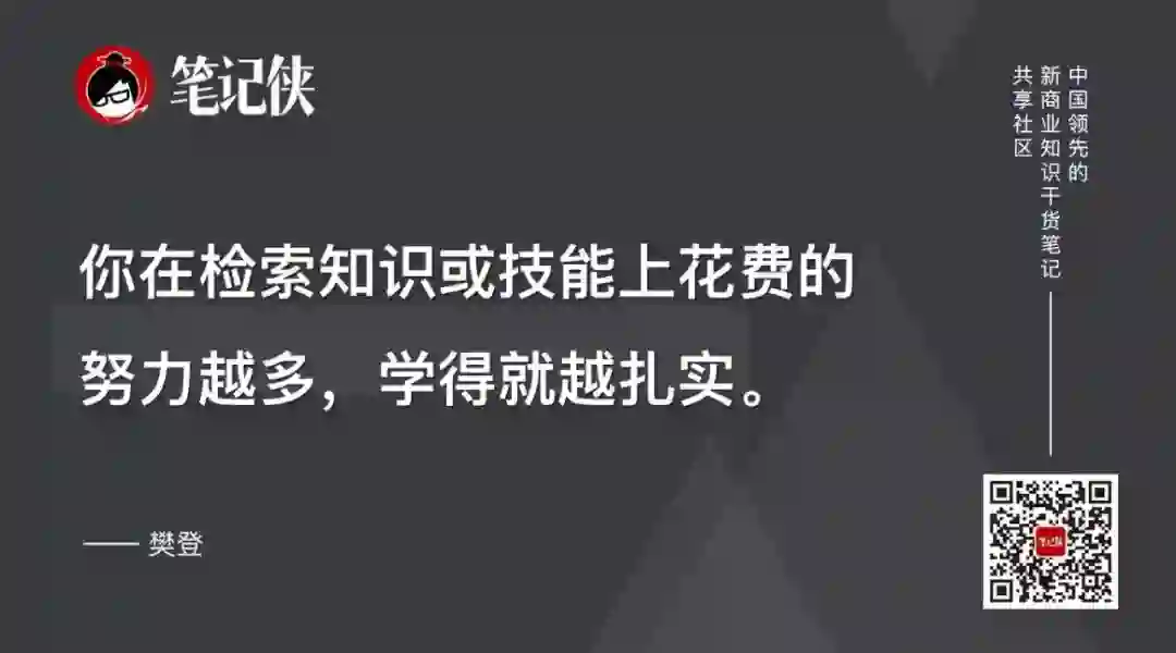 在《认知天性》里有一个名词叫作检索,也就是说在不看书的情况下,拼命回想某个内容,大脑只有经历痛苦,经历想不起来的过程,在回忆当中产生了一些痛,这时候学习的效果就会加倍。