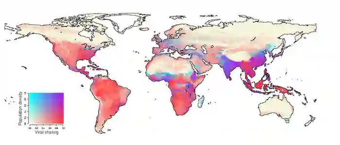 这项工作的重点是地理范围的变化,由于地理范围的变化将导致不同的哺乳动物的栖息地也跟着发生变化,因此当同物种的哺乳动物第一次遇到其他物种的哺乳动物时,这些地理迁移或促进了此前毫无交集的物种间的病毒交换,从而导致它们将共享数千种病毒。