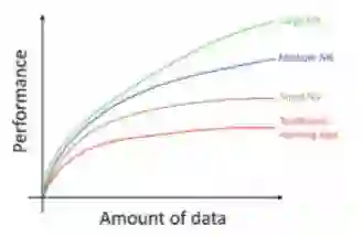 今天深度学习之所以这么有效,是因为我们拥有了大量数据能够进行处理和分析。下图是Andrew在2016年“Machine learning yearning”这本书里的一幅图,可以很直观地看出随着数据规模的增长,我们可以构建更大型的、更复杂的深度学习神经网络,从而更好地利用这些数据来提高它的准确率,以及模型的有效性。