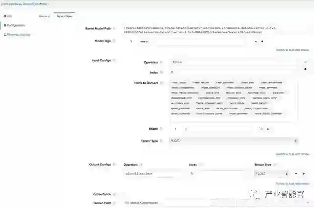 - 输出配置:指定在训练和导出模型期间配置的输出张量信息(请见Train model and save/export it using TensorFlow SavedModelBuilder部分);