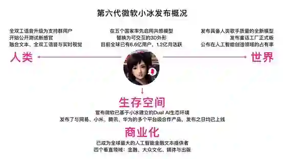 或许大家都没有意识到,从2014年一代小发布到不久前六代大更新,短短四年间,微软小冰已从一个领先的人工智能对话机器人发展成为以情感计算为核心的完整人工智能框架,许多人的态度也因微软小冰而改变。