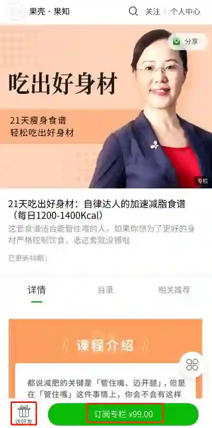 带着满满的诚意,我们也希望你把这门课程赠送给你的亲朋好友,让他们也能吃出健康好身材。